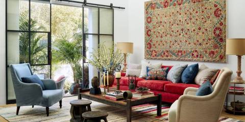 “You mix things up with old and new,” suggests textiles and interior designer Kathryn M. Ireland, as she did in the living room of her Santa Monica home; a room where the furnishings include 17th-century French chairs, an 18th-century Mexican console, and a cocktail table from her furniture line.